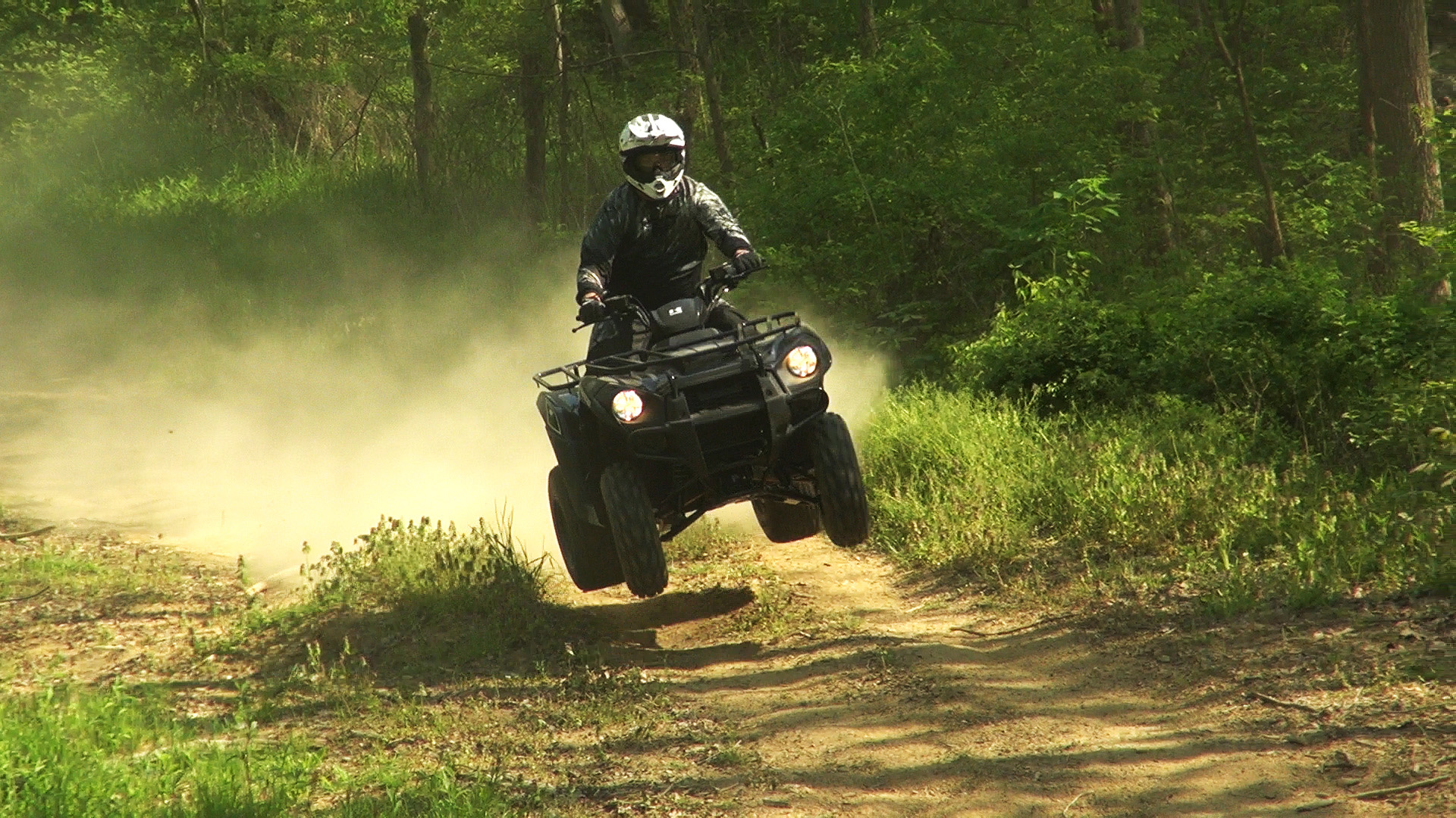 Suspension is the first thing we look for when judging the performance of a machine and the Brute Force didn’t disappoint us. Its performance is well-rounded and versatile. Our riders traversed roots, rocks, logs, got a little air, and Damon even pounded through a set of whoops just to test the limits. On smaller bumps, the suspension provided a decent level of plushness for beginners and casual riders. They do a good job of keeping the machine tracking straight through moderate-sized bumps at speed. Damon could bottom the shocks in their softest setting on bigger hits, but never felt the shocks bottom out once we firmed them up a notch. We really can’t imagine going any stiffer than the shock’s middle setting, unless we were planning on greatly exceeding the limits of the racks’ capacity.