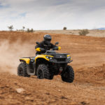 Compared to the outgoing 450 and 570, most new single-cylinder Outlanders received a 1.25” increase in front suspension travel at 9.75” and a 1.75” increase in rear suspension travel with 10.25” outback controlled by preload adjustable, twin tube, gas charged shocks. The X MR features slightly less travel at 9” front and 9.75” rear to offset its taller 28” tires. The X MR and all DPS models and up on the sport utility side feature Can-Am’s Tri-Mode Dynamic Power Steering along with the XU and Hunting Editions on the Pro models.