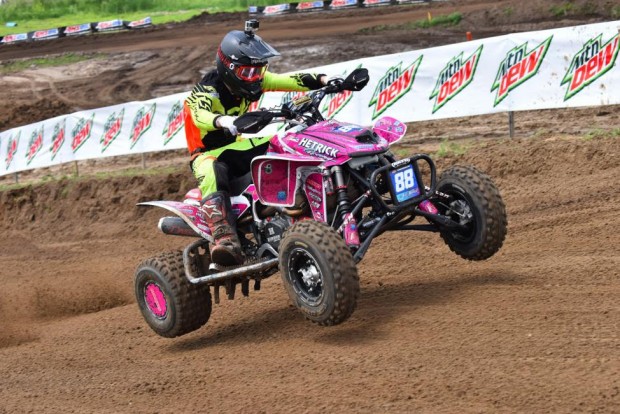 As has been the case for much of the season, Hetrick converted his first gate pick into the SSi Decals Holeshot Award for the opening AMA Pro ATV moto, with Wienen and Maxxis Yamaha, powered by Moto-Xperts, rider Thomas Brown in tow. Wienen applied the pressure on Hetrick early and was able to make the pass for the lead on the opening lap. The early pass did nothing to deter Hetrick’s confidence as he stuck to Wienen’s rear fender for the entire moto. Hetrick never sat more than a second and a half behind and even posted the fastest lap of the moto in pursuit of his rival. On Lap 9 Hetrick closed down the deficit to mere bike lengths and made a run for the win in the late stages of the moto. However, he high-sided while attempting to make the pass and lost valuable ground. Hetrick kept the bike going but Wienen would go on to lead all 11 laps of the moto and put himself in the drivers’ seat for the overall win. Hetrick was second in a moto that saw the lead duo check out on the field, sitting nearly 30 seconds ahead of Brown, who fnished third. Root River Racing’s Josh Upperman was fourth, with Maxxis/H&M Motorsports Honda’s David Haagsma Jr. in fifth.