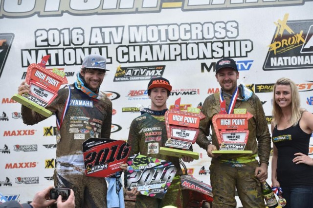 MORGANTOWN, W.Va. (May 21, 2016) – An abundant amount of rainfall occurred at High Point Raceway creating a slick and muddy track for the fifth round of the ProX ATV Motocross National Championship (ATVMX) presented by CST Tires, an AMA National Championship. The track crew worked diligently to create the best racecourse possible and at the conclusion of the two 20-minute motos it was Maxxis/Elka Suspension/Liquid Wrench’s Joel Hetrick who took home the overall win with 2-1 moto finishes.