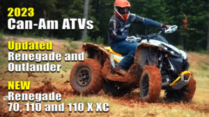 Updates for Outlander, Renegade, and NEW Renegade 70, 110 and 110 X XC Youth ATVs   For 2023, Can-Am pledges to stay ahead of the competition no matter whether the playground is in the water, on the street, or in the dirt. Based on their 2023 ATV lineup we suspect they mean it. 2023 Renegade and Outlander Updates The horsepower leading full-size Outlander and Renegade lineup was last significantly updated