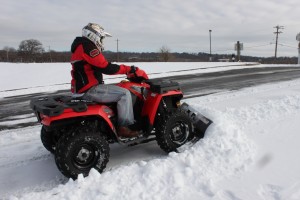 A while back, we did an install and first test on Cycle Country’s 60 inch BearForce steel plow with Manual Lift Kit, on our Yamaha Grizzly 550 test Unit. Unfortunately, we didn’t order our plow until late last winter. It arrived around a week later, just as the season’s last snow was melting. With no snow in sight, we were left scraping dirt off our concrete patio as a first
