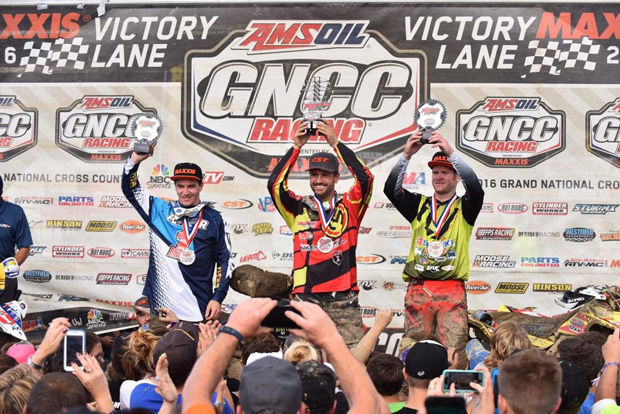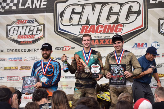 ST. CLAIRSVILLE, OH (October 1, 2016) – Racers and fans watched as CST/LSR/Induction Solutions/DeRisi/SG/Tire Blocks’s Adam McGill raced his way through the muddy 10-mile racecourse at the Polaris Ace Powerline Park GNCC to claim the overall win. Today, October 1, also played in favor for N-Fab/Maxxis/AmPro Yamaha/Lonestar/MXP’s Walker Fowler as he was able to wrap up his second National Championship at the twelfth round of the 2016 AMSOIL Grand National Cross Country (GNCC) Series presented by Maxxis, an AMA National Championship.