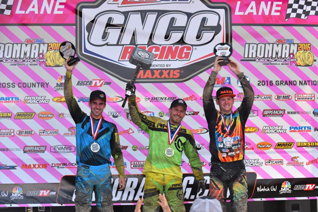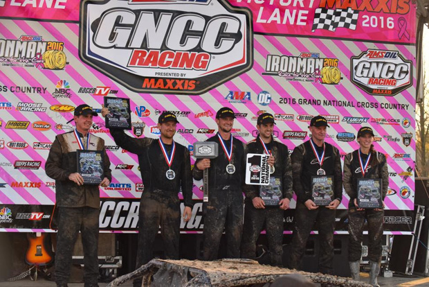CRAWFORDSVILLE, Ind. (October 29, 2016) – The 2016 AMSOIL Grand National Cross Country (GNCC) Series took place today, October 29, with the 22nd running of the AMSOIL Ironman GNCC held annually at Ironman Raceway in Crawfordsville, Indiana. The top spot on the box quickly became anyone’s to take with the two-time National Champion and N-Fab/Maxxis/AmPro Yamaha/Lonestar/MXP’s Walker Fowler missing from the start line due to a lingering issue that occurred at a local hare-scramble last weekend.