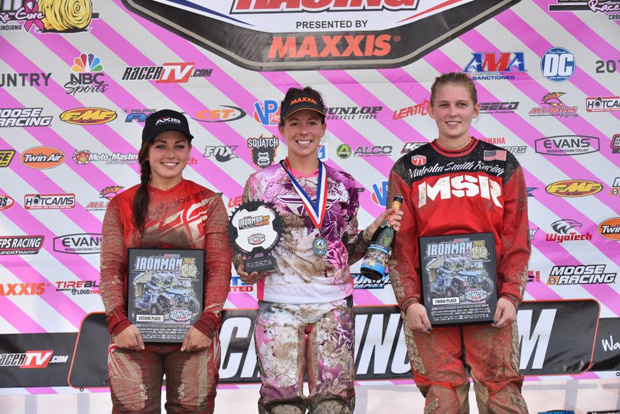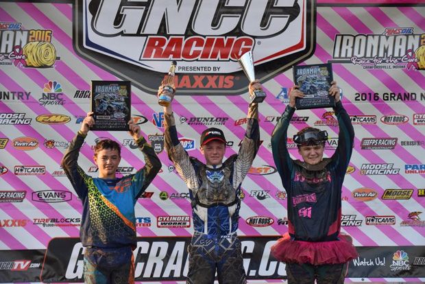 Meanwhile, Landon Wolfe continued to push from a top-five start to secure third when the two-lap card came out. Despite the enormous amount of pressure on him, Wolfe would end up landing on the podium with third. Wolfe’s placement proved that he will be a top contender for the 2017 championship with his first career podium finish at the Ironman GNCC.