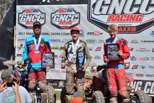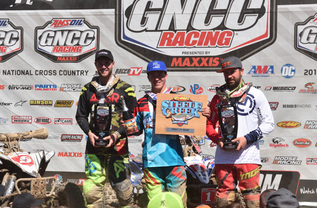 MORGANTON, N.C. (April 8, 2017) – The 2017 AMSOIL Grand National Cross Country (GNCC) Series presented by Maxxis, an AMA National Championship, continued today, April 8, with the 18th Annual FMF Steele Creek GNCC located at the popular Steele Creek Campground in Morganton, North Carolina. Rain from earlier in the week left the track a bit muddy to begin the day, but it did not take long for the conditions to turn around and create a near perfect race track by the time the 1 p.m. pro race headed to the start line.