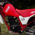 Cosmic Quads replaced the seat foam from 1984 to a fresh Hi-Flite seat foam. We then had them design us a new custom logoed, Honda red cover to go with it. We started off with a taller desert foam making it easier to transition from sitting to standing. However, test rider John Pellan was worried the taller seat would make controlling the machine in corners more difficult so we had Cosmic Quads redo it with a stock height foam and cover. It’s the fourth custom seat they’ve done for us and we’ve been happy every time.