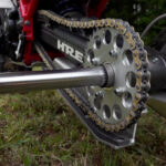 DuraBlue continues to offer their Eliminator axle for the 200X, which we installed in our machine. It’s constructed of chromoly and zinc plated for corrosion resistance. Claimed to be four-times stronger than stock, it’s covered by a limited lifetime warranty against bending or breaking. To achieve this, the axle goes through a number of heat treatments to maximize strength.  It’s adjustable in width, adding a maximum of 2” per side, 4” overall. It includes wheel hub rings for adjustment, DuraBlue’s Posi Lok lock nut and a new sprocket hub, requiring the use of a 1981-1982 ATC250R sprocket.  For longevity, the rear end was assembled with a new Tusk axle bearing and seal kit.