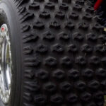Wanting to keep rotating mass down and strength up, OMF built us a set of DWT’s lightweight, Blue Label, 8” rear wheels. OMF installed a set of their lightweight reinforcing rings on the inside and outside edge to reinforce the bead making them stronger yet very light and cool to look at.  18×9.5-8 Kenda Scorpion tires performed well on our ATC250R and 350X projects. They feature diamond shaped, dimpled knobs that offer more forward and braking bite, with less traction on side loads allowing them to slide a little easier than most modern sport ATV tires. They’ve proven to be a good do-it-all tire for track conditions from loam to hardpack.