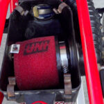 To feed the thirstier engine, Four Stroke Tech utilized their 30mm carburetor kit. It comes pre-jetted to match their different aengine kits. Air is drawn to the carburetor through the stock 200X intake with the airbox lid removed. A UNI foam filter provides the flow needed for a race engine, with the fine dust particle protection we aren’t willing to sacrifice.
