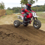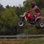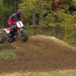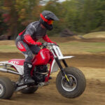 For the test, we met up with rider, John Pellan, at Briarcliff MX, located in Nashport, Ohio. We used less technical sections of their main track, a favorite among ATV MX racers, along with their Vet track, consisting of more forgiving doubles and tabletops. Both tracks were plowed deep, really putting our ATC200X’s upgraded engine, suspension, and handling to the test. John did sneak onto the water truck track surrounding the vet track to feel out the trike’s handling on some dry, hard-packed turns, which are more in line with the conditions a three-wheeler excels in.