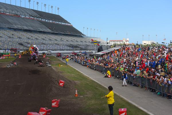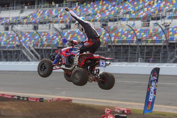 DAYTONA BEACH, Fla. (March 10, 2015) – Tuesday afternoon presented one of the most landmark moments in the history of the Mtn. Dew ATV Motocross National Championship, sanctioned by AMA (ATVMX), as the world’s best four wheel off-road motorcycle racers took to the hallowed grounds of the Daytona International Speedway infield for the inaugural FLY Racing ATV Supercross (ATVSX).