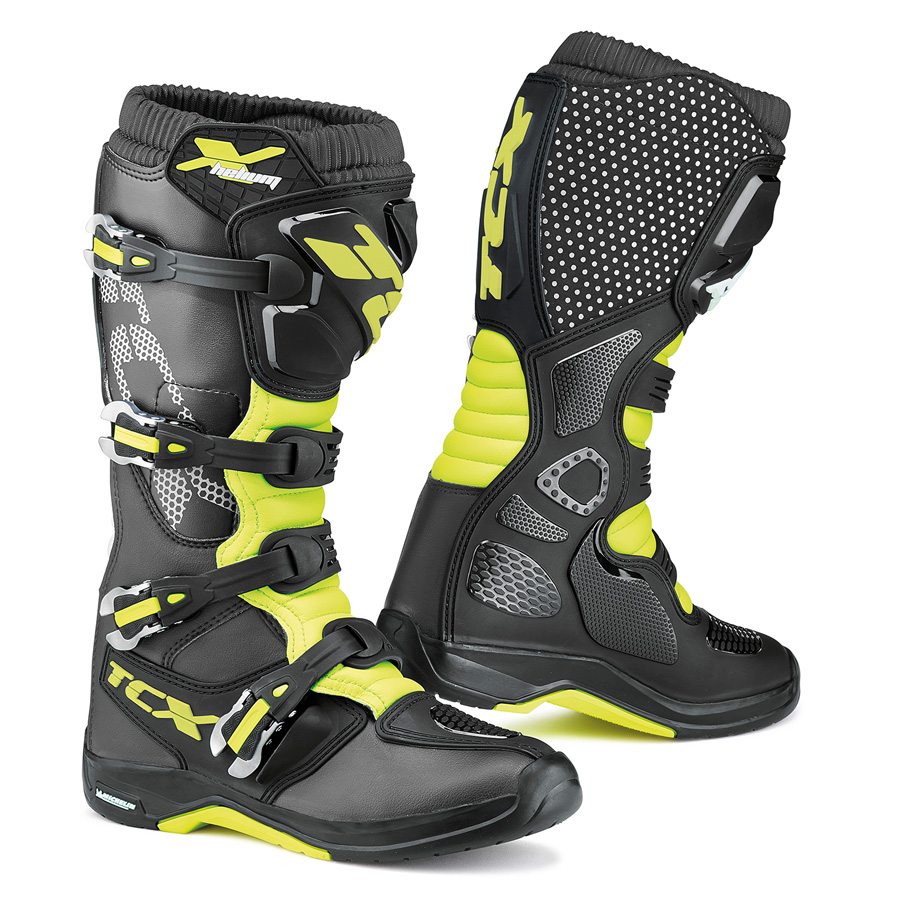 March 10, 2017 – Blending the best technical features of a pure moto boot with the more specialized needs of an enduro rider or a dual-sporter, TCX elevates the off-road arena with the 2017 X-Helium. From the trick top buckle to the bottom of its exclusive Michelin® MX Hybrid sole, the X-Helium lives up to the company’s “Focus On Boots” motto. And unlike its predecessor, the X-Helium 2.0 is available in more than just black and white: Fluorescent Yellow joins the colorways.
