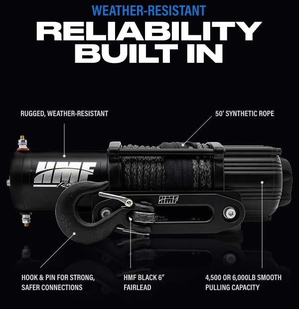 The all-new HMF XD Winch is built for serious off-road recovery, available in 4,500 lb and 6,000 lb capacities to match your UTV’s needs. Whether you’re pulling yourself out of deep mud or hauling heavy loads, choose the perfect size for your machine.