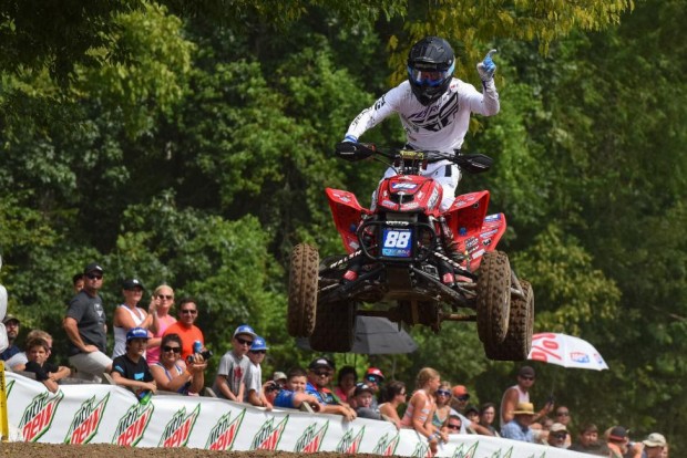 HURRICANE MILLS, Tenn. (August 9, 2015) – The 2015 Mtn. Dew ATV Motocross National Championship, sanctioned by AMA Pro Racing (ATVMX), came down to the wire on Saturday at the season finale from legendary Loretta Lynn’s Ranch. Just 15 points separated the top two riders in the AMA Pro ATV standings – Wienen Motorsports/Maxxis/SSi Decals/Walsh Race Craft Yamaha’s Chad Wienen and Hetrick Racing/Corrosion Specialties Honda’s Joel Hetrick – and their season-long battle came all the way down to the final checkered flag. Chasing an incredible fourth consecutive championship, Wienen rose to the occasion and outdueled Hetrick to capture the title emphatically, by claiming his fifth overall win.