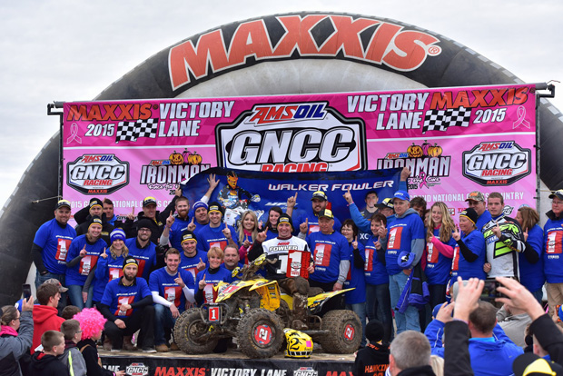CYPRESS, Calif. – November 2, 2015 – Yamaha Racing’s Walker Fowler secured the overall ATV National Championship in Sunday’s Grand National Cross Country (GNCC) season finale off-road event, dubbed “The Ironman”, in Crawfordsville, Ind. aboard a YFZ450R sporting Yamaha’s 60th anniversary yellow and black color scheme. Highlighting the event was Yamaha Motorsports USA’s 60th Anniversary celebration commemorating and recognizing their history and heritage in motorsports and GNCC racing.